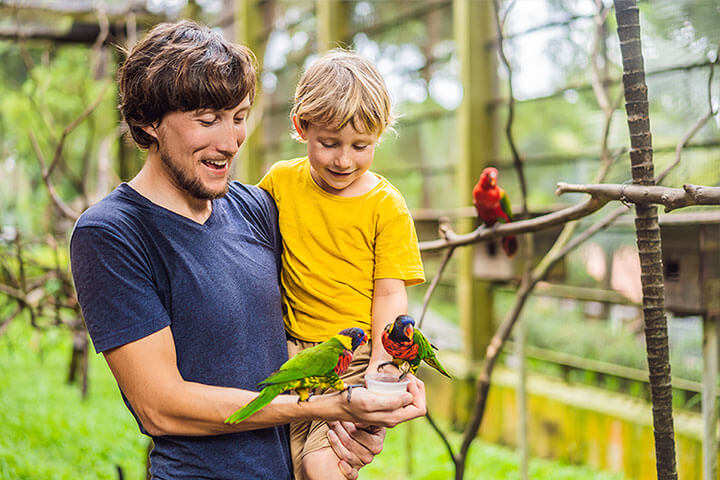 Companion birds use harvesting techniques and access mechanics like what we observe in birds living in their natural habitats. Most birds prefer to forage for food high up in the canopy where they are at the lowest risk from predators. They seize the fruit, nuts, seed pods etc. from a branch then hold it with one foot to feed. Pet birds have the luxury of food bowls; wild birds rely on their instincts to maintain possession of an item to feed.