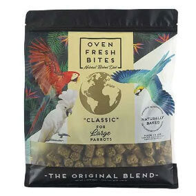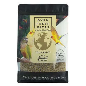 Fresh Bites Bird Food DifferentUnlike other parrot food, Oven Fresh Bites™ bird food does not utilize corn or wheat as the primary source of dietary energy and protein. Oven Fresh Bites™ is oven baked and uses wholesome ingredients that offer a variety of nutrients and textures such as oatmeal and sunflower meal. This special blend of bird food has been tried and tested by bird and parrot owners alike.